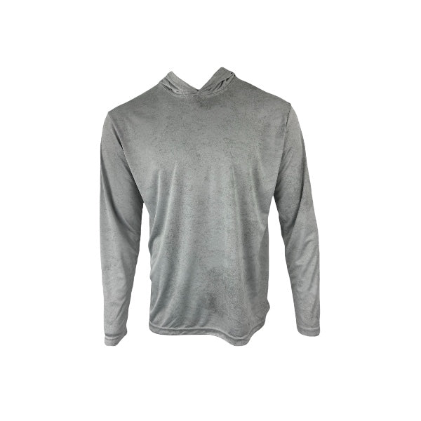 4.5 oz, 100% Polyester Sandeed Interlock Mineral Wash. Lightweight, quick drying, UPF 40 Sun Protection. In addition you have extra sun protection with our hood. Fabric is dyed with Poly HD Technology.